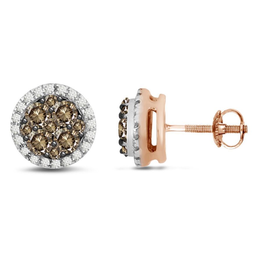 LADIES EARRING 0.50CT DARK BROWN/ROUND DIAMOND 14K ROSE GOLD
