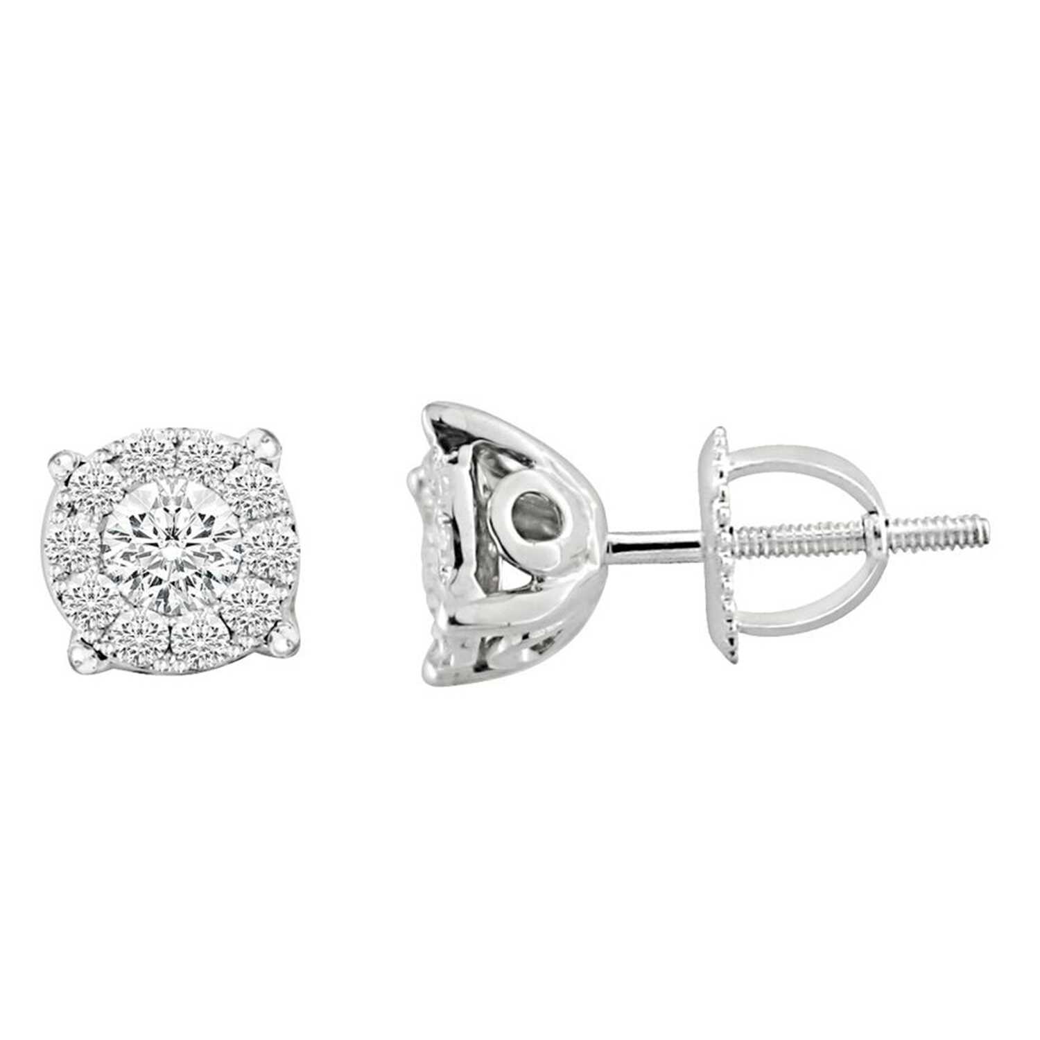 LADIES EARRINGS 0.25CT ROUND DIAMOND 14K WHITE GOLD (SI QUALITY)