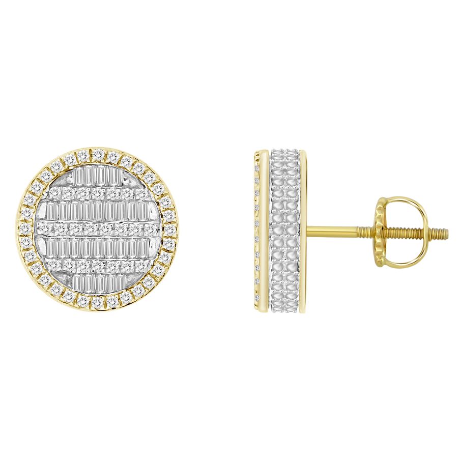LADIES EARRINGS 0.75CT ROUND/BAGUETTE DIAMOND 10K YELLOW GOLD