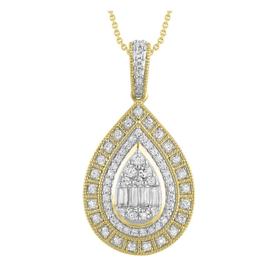 LADIES PENDANT WITH CHAIN 0.50CT ROUND/BAGUETTE DIAMOND 10K YELLOW GOLD