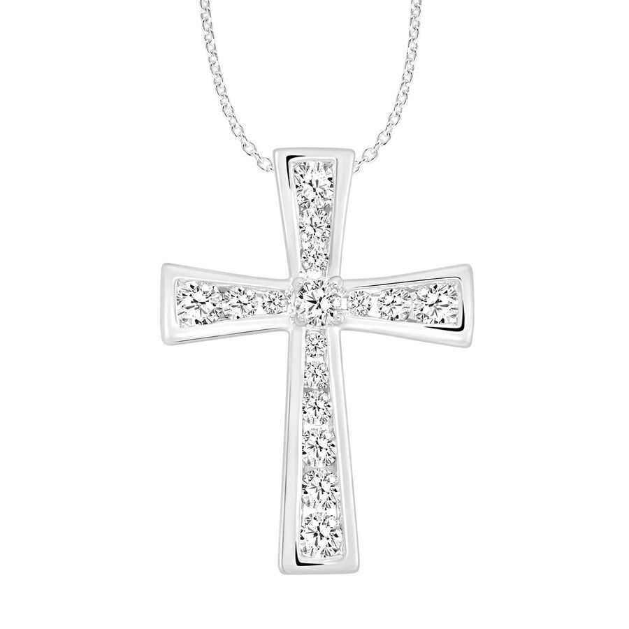 LADIES PENDANT WITH CHAIN 0.50CT ROUND DIAMOND 10K WHITE GOLD