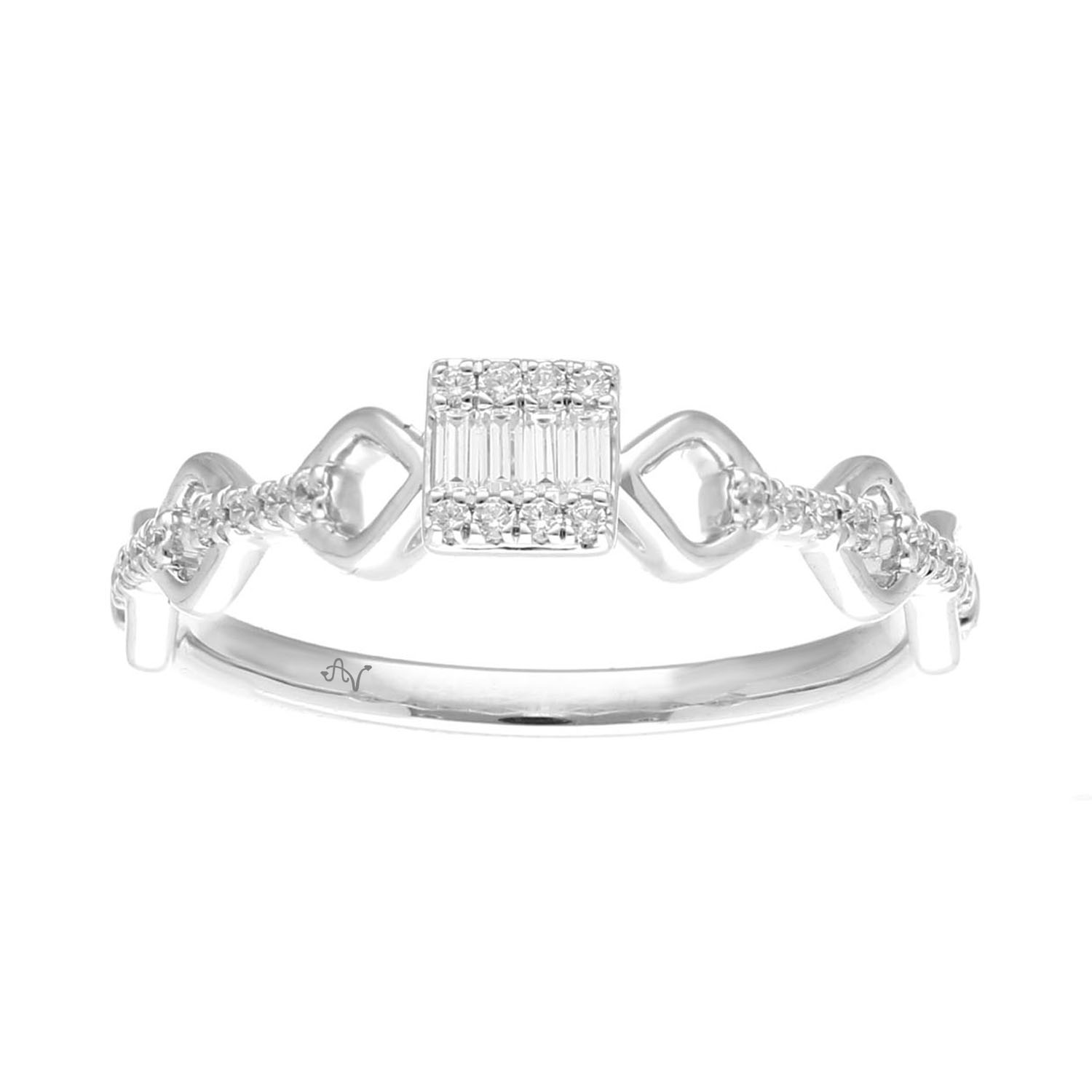 LADIES RING 0.15CT ROUND/BAGUETTE DIAMOND 14K WHITE GOLD