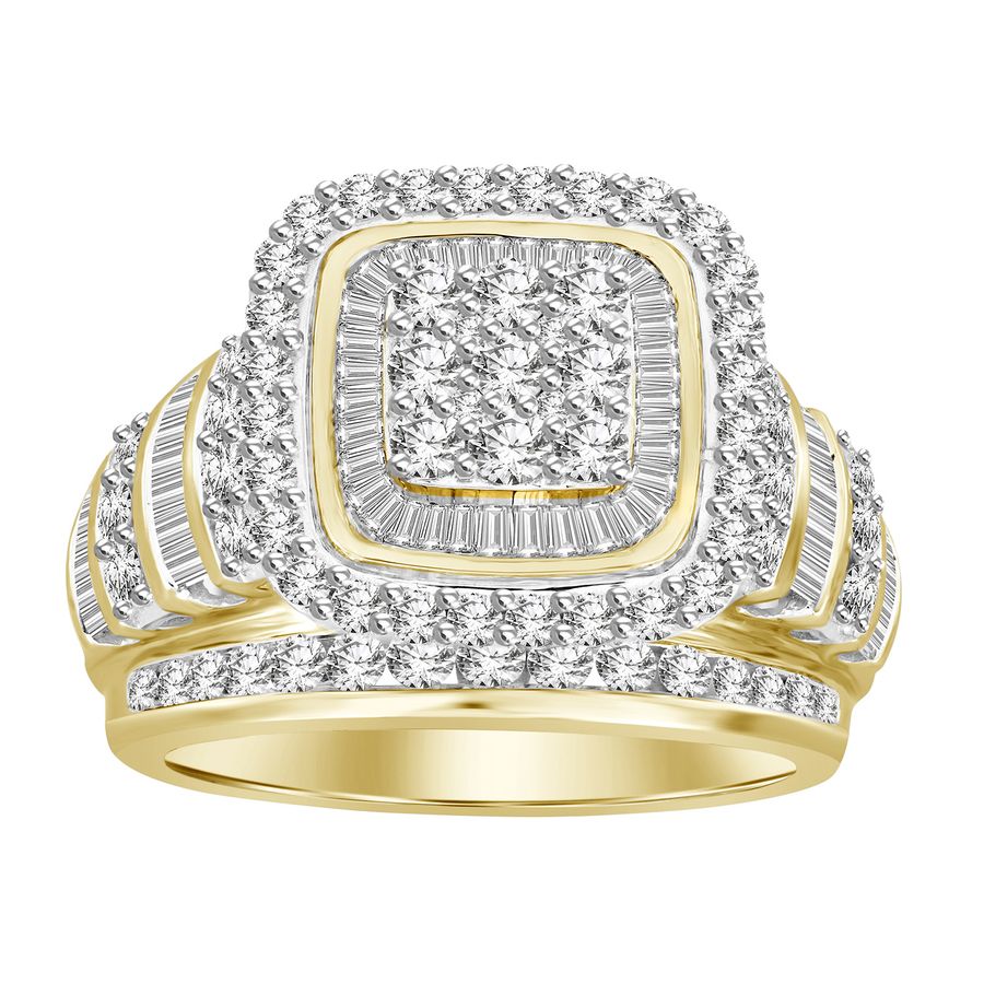 LADIES RING 2.10CT ROUND/BAGUETTE DIAMOND 10K YELLOW GOLD