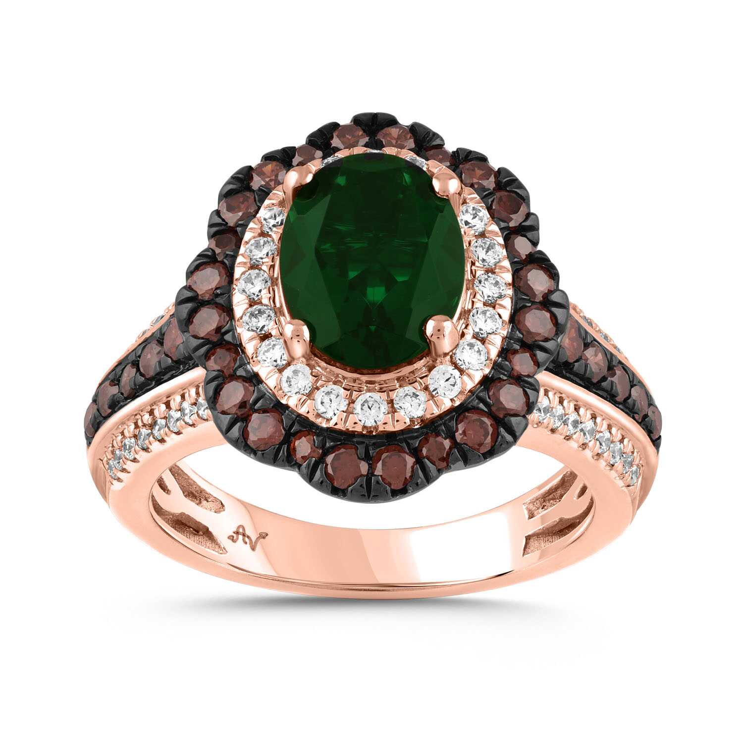 LADIES RING 2.95CT ROUND/DARK BROWN/OVAL/EMERALD DIAMOND 14K ROSE GOLD (CENTER STONE 1.90 CT EMERALD DIAMOND)