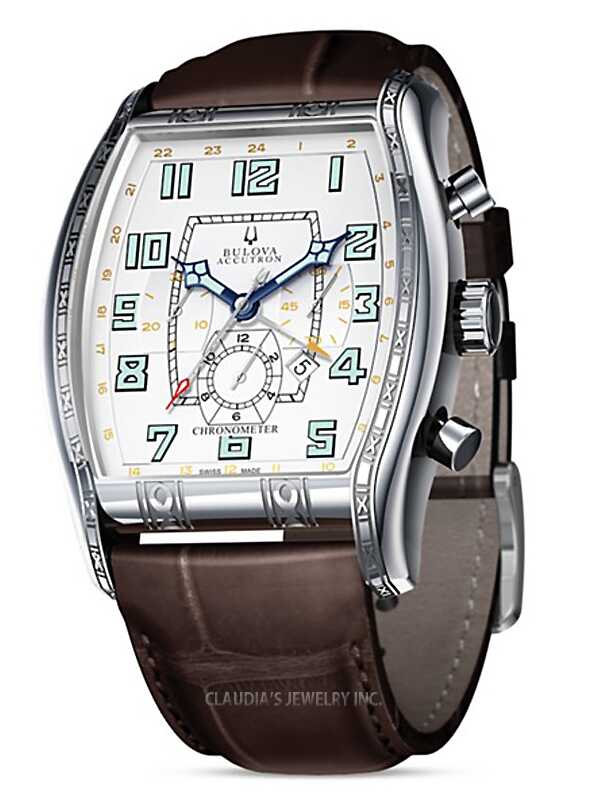Limited Edition 200 pieces worldwide the Bulova Accutron Conqueror is certified by the Contrôle Officiel Suisse des Chronomètres (COSC) the Swiss institute responsible for certifying the accuracy and precision of wristwatches, as meeting the highest standards of contemporary timekeeping. Featuring a Dubois-Depraz 31340 53-jewel automatic mechanical movement, this distinguished Swiss-made timepiece incorporates a precision chronometer as well as a 24-hour GMT indicator.