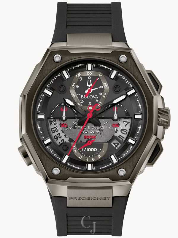 Since its 2010 debut, Precisionist exhibited advanced timekeeping at its best – fusing distinctive bold architectural design with state-of-the-art proprietary 262kHz movement. 2020 celebrates 10 years of the Precisionist technology and reinvents the Precisionist aesthetic with a revolutionary new design. With its proprietary high performance movement, the men’s watch features a stainless steel grey case with a black top ring insert and black dial. It is paired with a black EPDM rubber strap. In addition, it features a calendar and twelve-hour chronograph with precise timing to 1/1000th of a second and continuous-sweep second hand for a perfect pairing of form and function. Luxury, performance, and history — the Precisionist is a perfect union of innovative technology and design – a discerning timepiece for the ages.