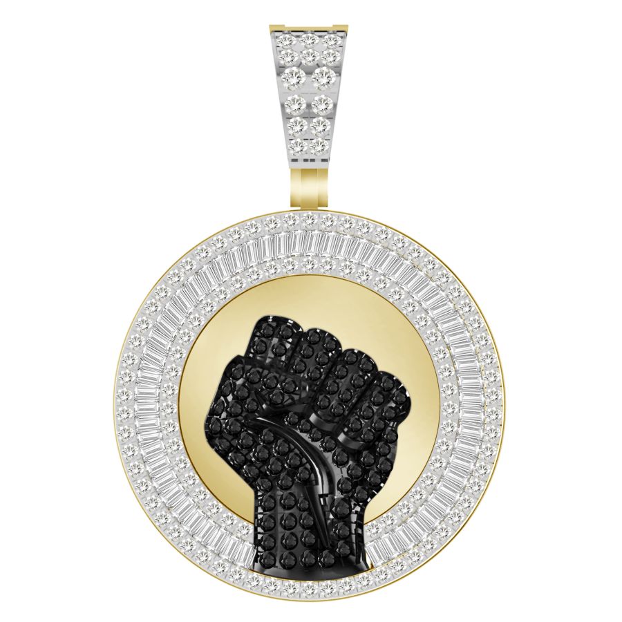 MEN’S CHARM 3.50CT ROUND/BAGUETTE BLACK DIAMOND 10K YELLOW GOLD