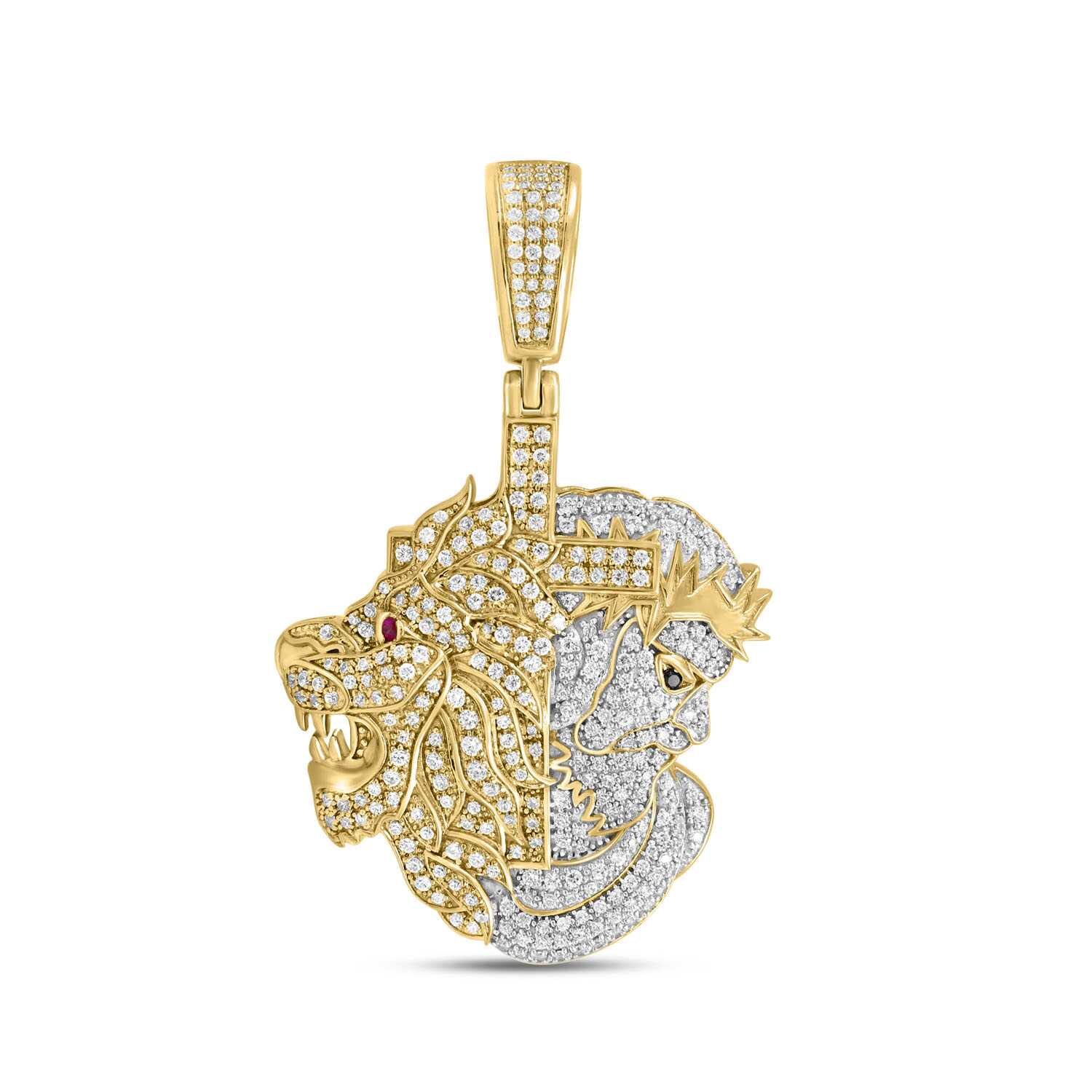 MEN’S CHARM PENDANT 1.50CT ROUND/BLACK/RUBY DIAMOND 10K YELLOW GOLD