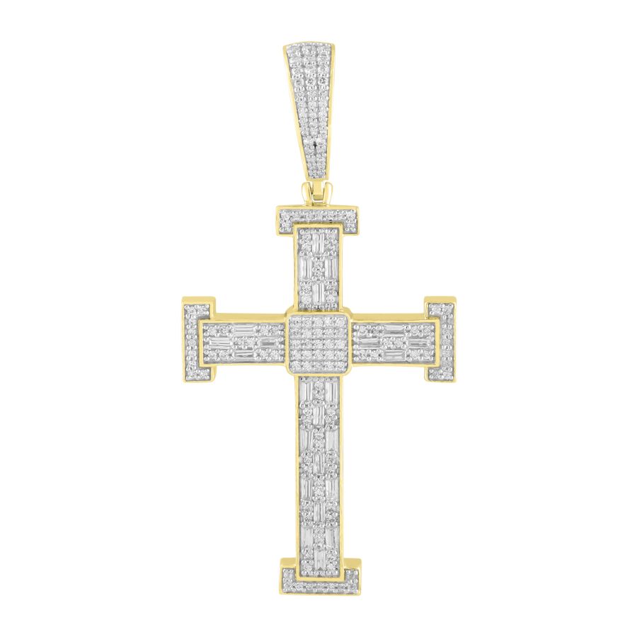 MEN’S PENDANT 1.50CT ROUND/BAGUETTE DIAMOND 10K YELLOW GOLD