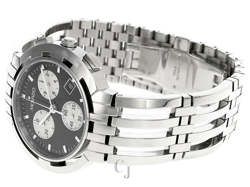 Movado Esperanza Mens Collection. Swiss made quartz, Stainless steel with modern classy and elegant styles Movado timepieces evoke purity of design and quality Swiss craftsmanship. Model Number 0605765 Men’s Case stainless steel, Black dial with silver tone hands, Band Material Stainless Steel,Hidden push button deployment clasp, Movement Swiss made quartz, Crystal Sapphire, Case Thickness 10 mm, Water Resistant 30 meters / 100 feet, Case Diameter 40 mm.