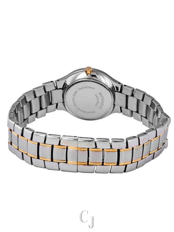 The Movado Stiri Women’s Watch (Model 0607281) is a sophisticated blend of elegance and versatility, perfect for both casual and dress occasions. Featuring a 28mm round yellow gold PVD-coated stainless steel case, it showcases a striking black dial with gold-tone hands and the iconic Movado Museum dot at 12 o’clock. A scratch-resistant sapphire crystal ensures long-lasting clarity, while the Swiss quartz movement delivers precise, low-maintenance timekeeping. The watch is paired with a two-tone stainless steel bracelet in silver and yellow gold PVD, secured with a deployment clasp and push-button release. With 30-meter water resistance, it’s ideal for everyday elegance with a timeless edge.