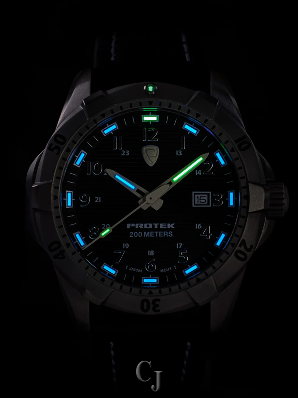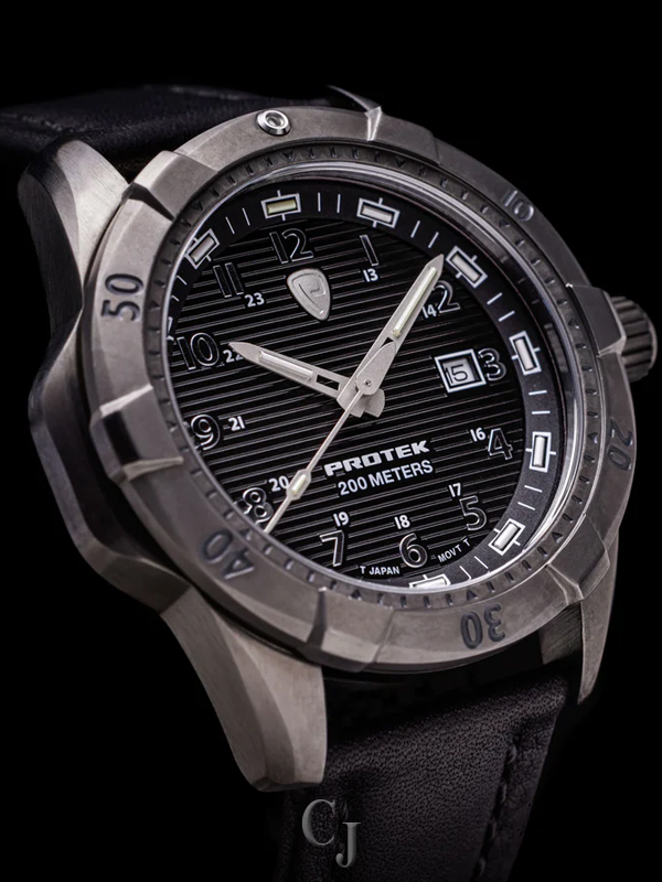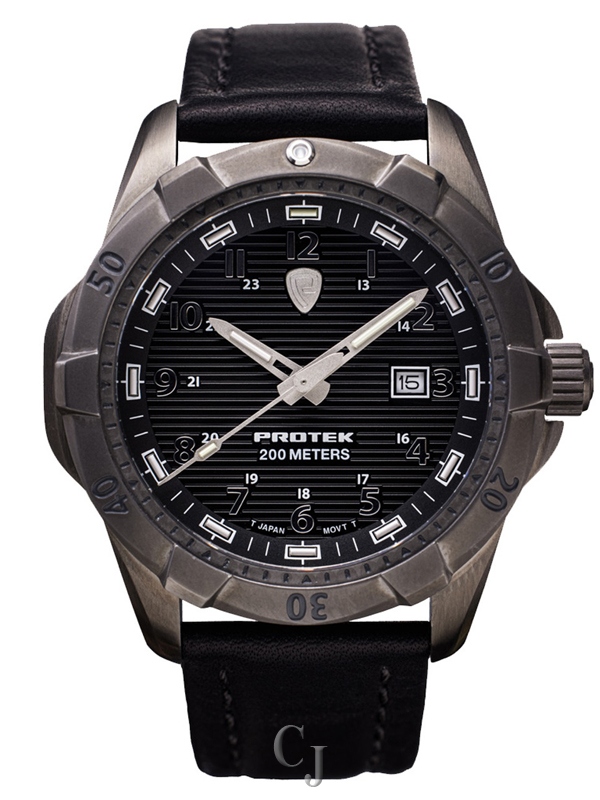 PROTEK DIVE SERIES 2000 BLACK DIAL W/BLACK LEATHER STRAP WATCH PT2002