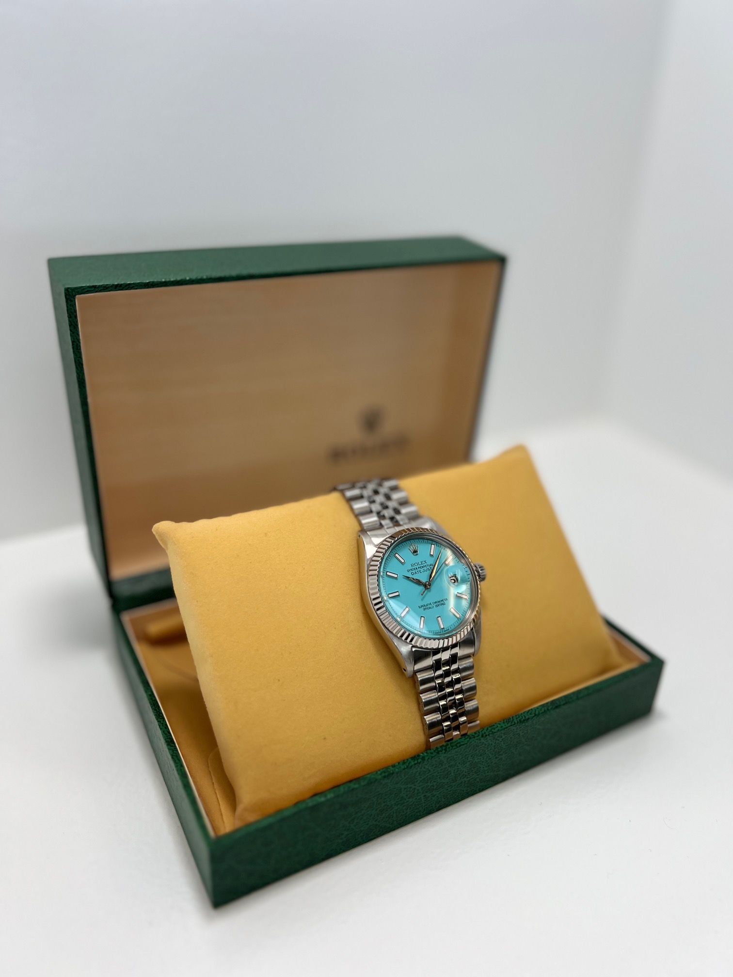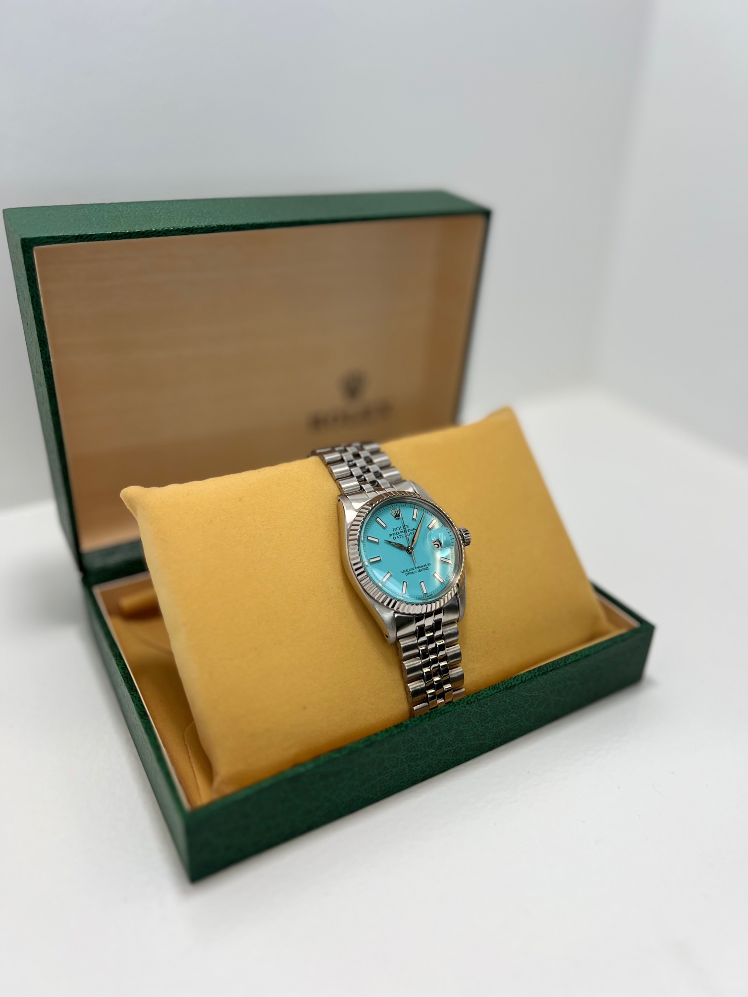 ROLEX DATEJUST 36MM TURQUOISE DIAL JUBILEE STAINLESS STEEL BAND 1601