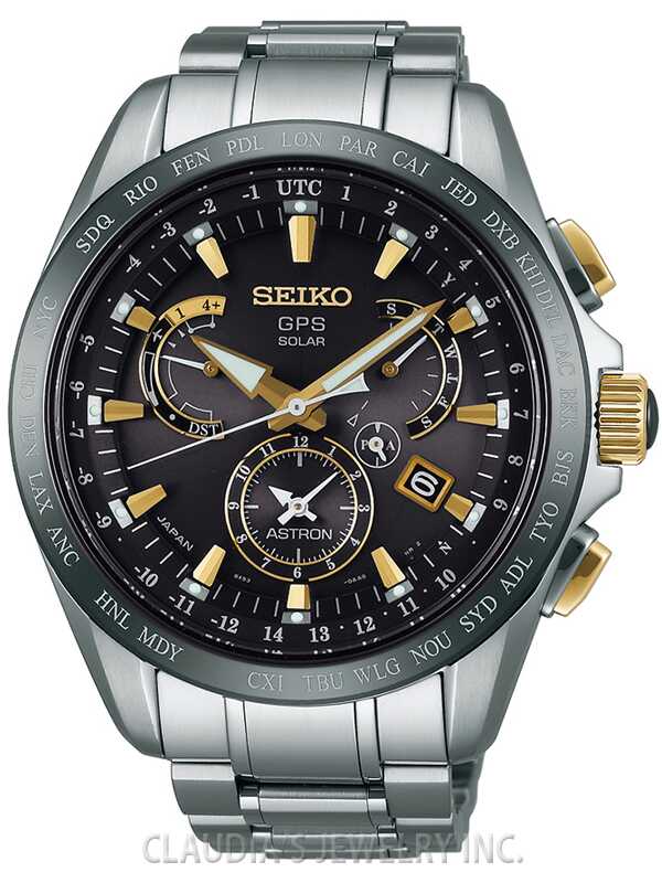 GPS Solar Dual Time,GPS controlled time and time zone adjustment Magnetic resistance 4,800A/m Perpetual day and date calendar correct to the year 2100, Signal reception result indication, Dual time indicator (40 time zones) AM/PM indicator Daylight savings time function,Power save function,Sapphire glass with Seiko’s proprietary super clear, anti-reflective coating,Tri-fold push button release clasp,LumiBrite hands and markers Case Diameter 45.0mm,Water-resistant to 10 bar, 100 meters (330 feet) Caliber 8X53 Black Ceramic Bezel,Titanium Case and Bracelet with Super Hard Coating