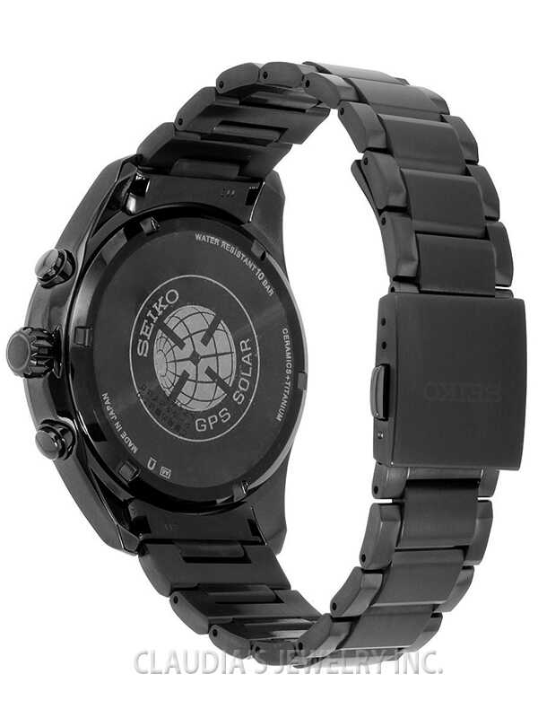 GPS Solar World Time, GPS controlled time and time zone adjustment (40 Time Zones) Magnetic resistance 4,800A/m,Perpetual date calendar corrects to the year 2100 Signal reception result indication, Daylight savings time function,Power save function Sapphire glass with Seiko’s proprietary super clear, anti-reflective coating Tri-fold push button release clasp,LumiBrite hands and markers,Screwdown caseback 45.0mm diameter,Water-resistant to 10 bar, 100 meters (330 feet) Caliber 8X22 Black ceramic bezel,Titanium case and bracelet with super-hard black coating.