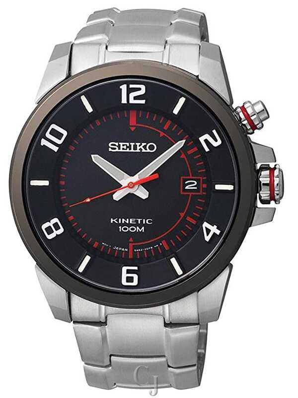 SEIKO KINETIC STAINLESS STEEL BLACK DIAL SKA553