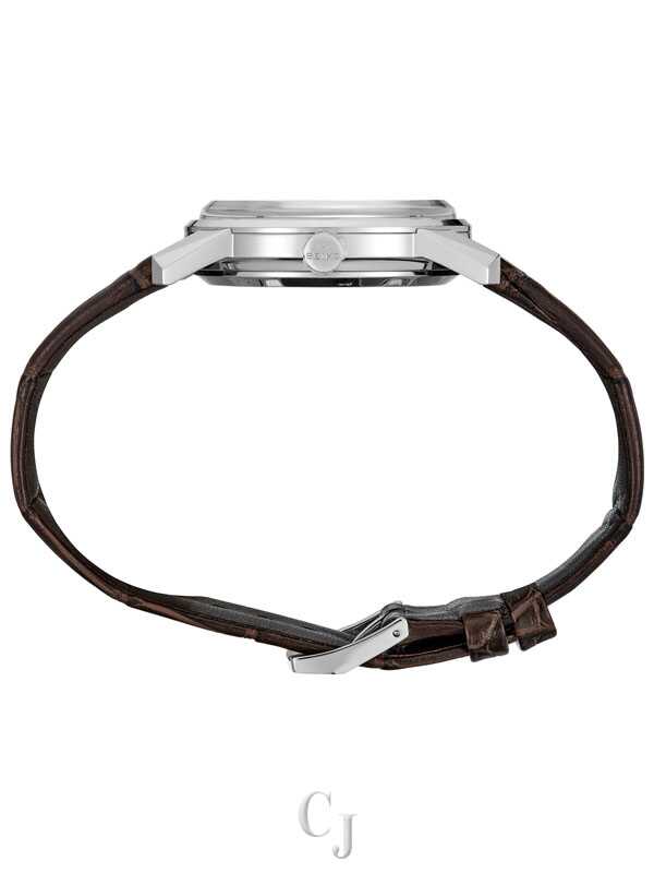 King Seiko KSK Re-Creation Limited Edition. Introduced in 1961 and in production until 1975, King Seiko became one of the Seiko’s most technically innovative and stylish brands, noted for its sleek, dignified angularity. Re-creating the King Seiko KSK of 1965, with its slightly sportier and more practical features, this exceptional Limited Edition is available only in a controlled-production run of 1,700, with the serial number engraved on each screwback case. With a larger case and upgraded box-shaped anti-reflective sapphire crystal, this streamlined re-creation includes a thin automatic caliber movement with a frequency of 28,800 vibrations per hour, a power reserve of approximately 45 hours, and manual winding capability. The pale champagne dial features a calendar, textured 12 o’clock marker, and subtle gold accents. Crafted of stainless steel, this distinctive timepiece also offers a box shaped sapphire crystal with anti-reflective coasting on the inner surface, and a brown crocodile strap, and sports the King Seiko crest on its caseback as well as stylized Seiko logos on the crown and buckle. Presented in a Limited Edition collectors’ box. 5 bar, 50M Water Resistant.