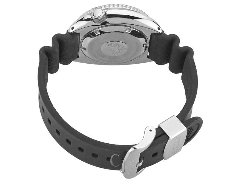Automatic Diver, Manual and automatic winding capabilities, 21,600 vibrations per hour, Power reserve: approximately 41 hours, 24 jewels, Day/Date calendar, Screwdown crown and caseback, One-way rotating elapsed timing bezel, LumiBrite hands and markers, Case diameter: 45.0mm, Stainless steel case, Silicone strap, Water Resistance: Diver’s Watch 200 meters (660 feet). Follows ISO standards and is suitable for scuba diving, Caliber 4R36