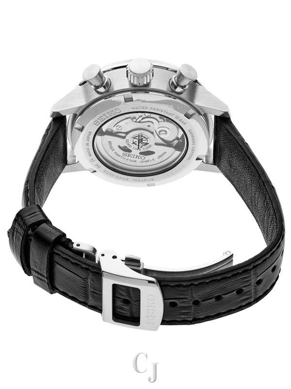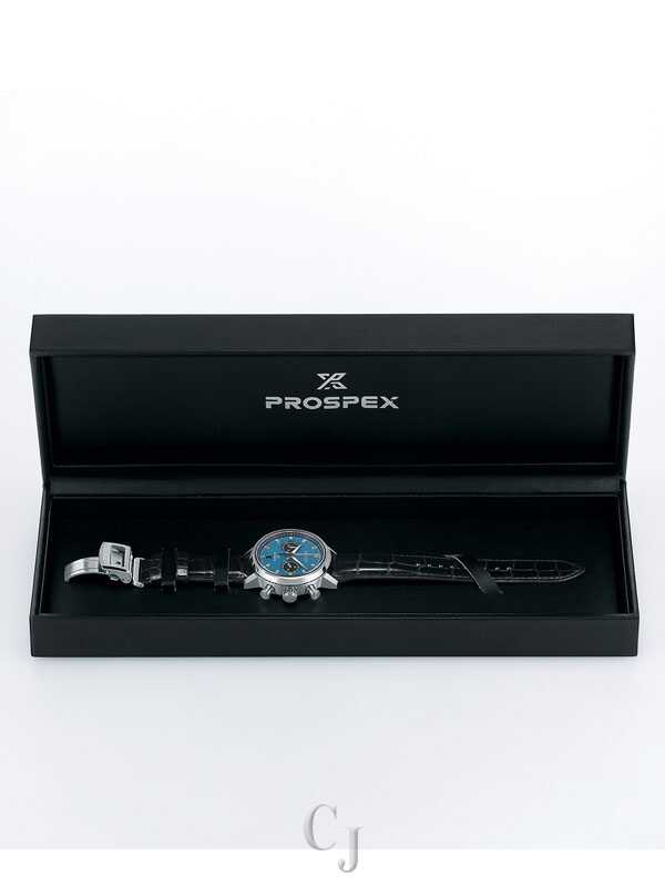 Prospex Speedtimer Mechanical Chronograph. Designed for those who treat life as the ultimate adventure, the Seiko Prospex line meets every challenge with technological excellence and style. Celebrating Seiko’s first precision chronographs, developed for international sporting competitions in 1964, as well as its 1969 introduction of the world’s first automatic chronograph, this exceptional watch provides chronograph measurement of up to 30 minutes of elapsed time in 1/8-second increments. The 34-jewel automatic movement, visible through the screwdown see-through caseback, beats at a frequency of 28,800 vibrations per hour, with a power reserve of approximately 45 hours and manual winding capability. The proprietary 8R46 movement includes a column wheel and vertical clutch mechanism allowing for smooth, stutter-free movement of the chronograph hand while providing longer wear and efficiency, and maintaining the power reserve better during chronograph operation. Crafted of stainless steel with super-hard coating and tri-fold push button release clasp, this extraordinary timepiece also features a vibrant blue dial with LumiBrite hands and markers topped by a dual curved anti-reflective sapphire crystal and is paired with a sleek black crocodile strap. 10 bar, 100M Water Resistant