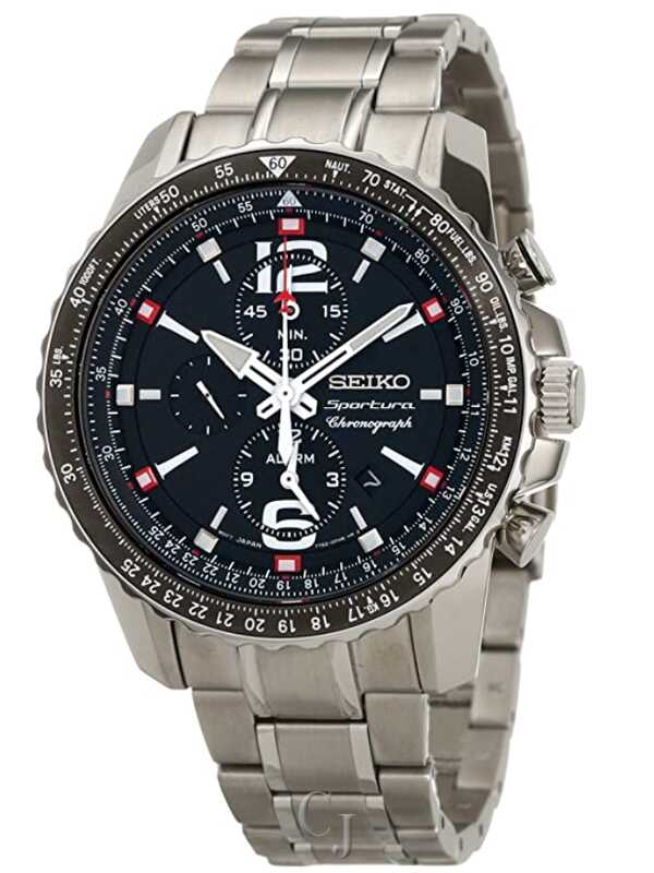 Seiko Sportura Aviator Chronograph Black Dial Men’s Watch SNAE95