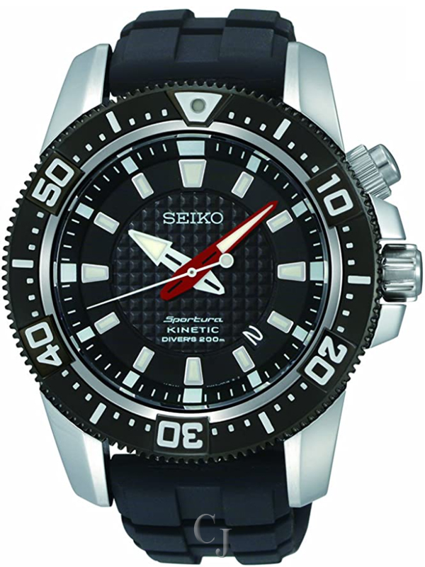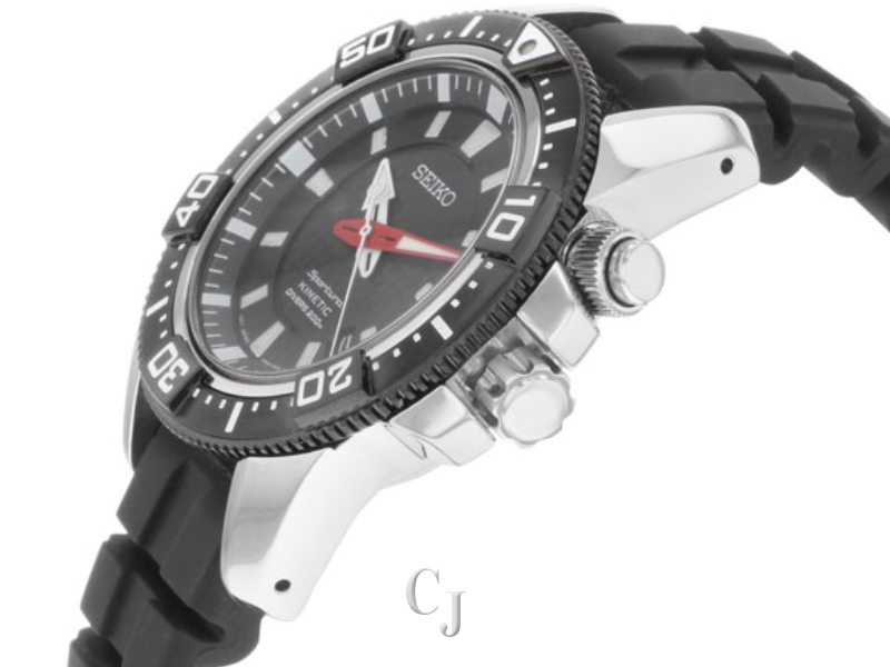 This display model Seiko Sportura Ska513 is a beautiful men’s timepiece that is powered by quartz: kinetic movement which is cased in a stainless steel case. It has a round shape face, date dial and has hand sticks style markers. It is completed with a rubber band that opens and closes with a tang buckle.