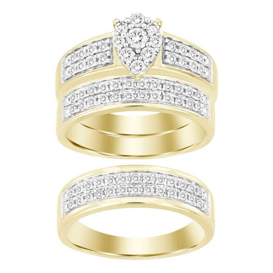 UNISEX TRIOS SET 1.00CT ROUND DIAMOND 10K YELLOW GOLD