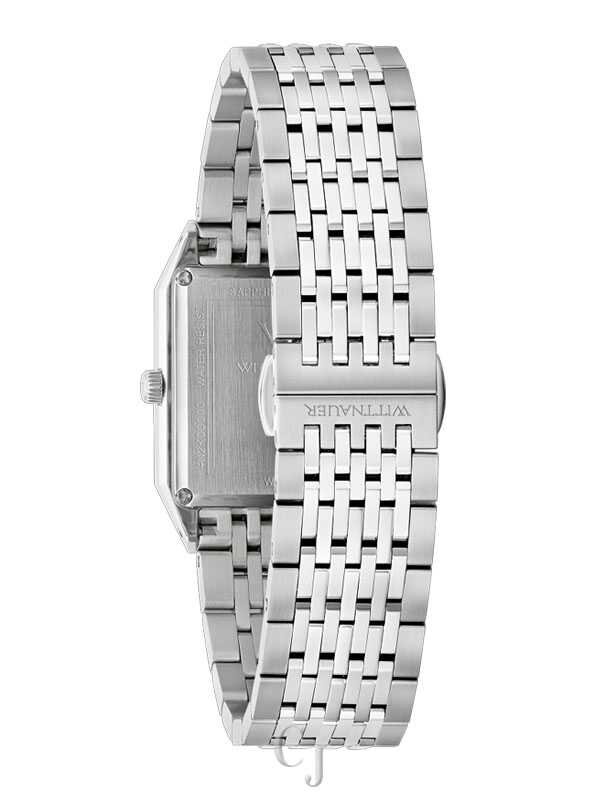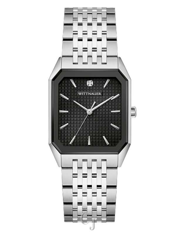 The Wittnauer Men’s Black Dial Rectangular Stainless Steel Watch WN3111 combines sleek modern design with timeless sophistication. Crafted in silver-tone stainless steel, this release showcases a bold black dial accented with hand-set natural diamond markers, delivering a refined and confident look. A faceted anti-reflective sapphire crystal enhances depth and brilliance, while the rectangular 29mm × 39mm case maintains a slim 7.6mm profile for a contemporary fit. The stainless steel bracelet with a deployant clasp and push buttons ensures lasting comfort and security. Water resistant to 30 meters, this watch embodies Wittnauer’s signature craftsmanship and understated elegance, making it a perfect choice for the modern gentleman.