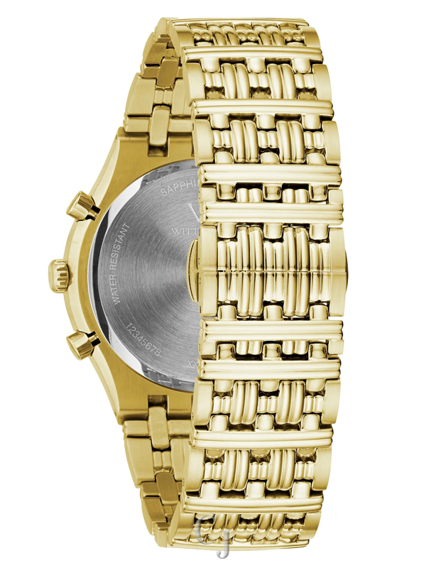 Polished elegance and the precision of a three sub-dial chronograph. 24 diamonds hand-set on the bezel around a silver multi-textured dial elevates the aesthetic yet stays highly functional with scratch-resistant sapphire crystal and water resistance to 50 meters. The polished and brushed gold-tone stainless steel link bracelet features a double-press deployant closure.