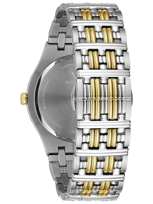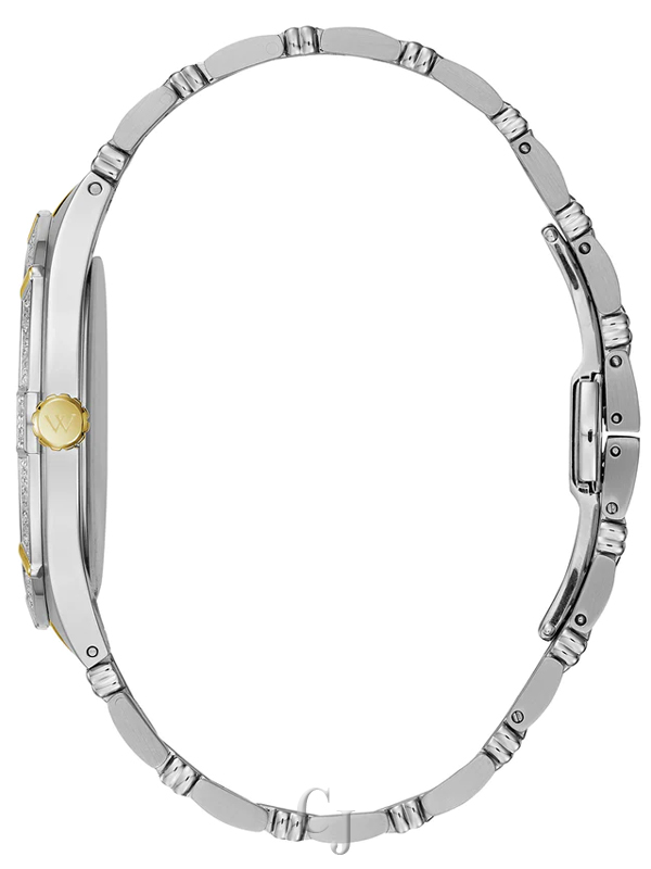 Elegant and refined from every angle in two-tone gold-plated stainless steel with 24 individually hand-set diamonds on the bezel. This dazzling timepiece features a multi-link bracelet with brushed and polished finishes for added dimension.
